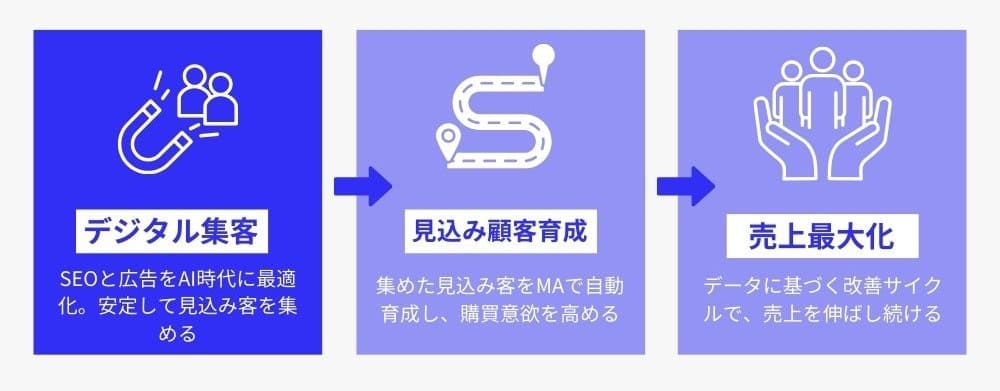 事業内容:デジタル集客支援、マーケティングオートメーション導入、デジタル化・AIによる業務効率化