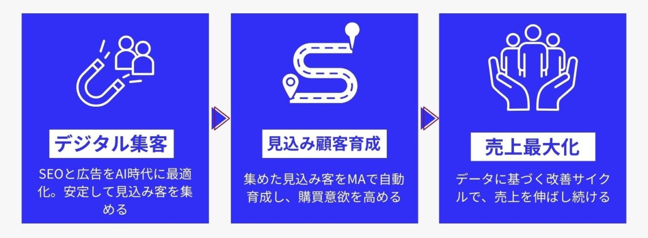 事業内容:デジタル集客支援、マーケティングオートメーション導入、デジタル化・AIによる業務効率化